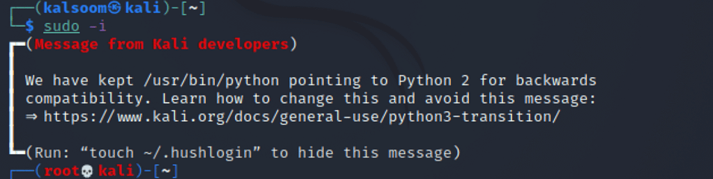Step 2: To change the standard user account to the root account, execute the following cited command into the terminal.
