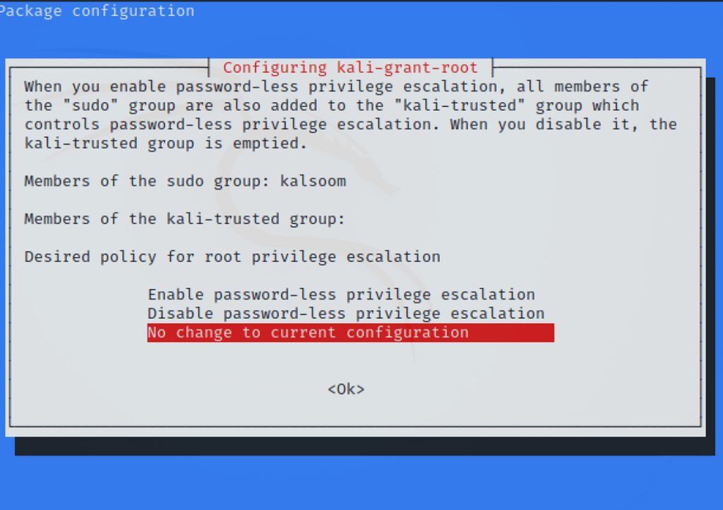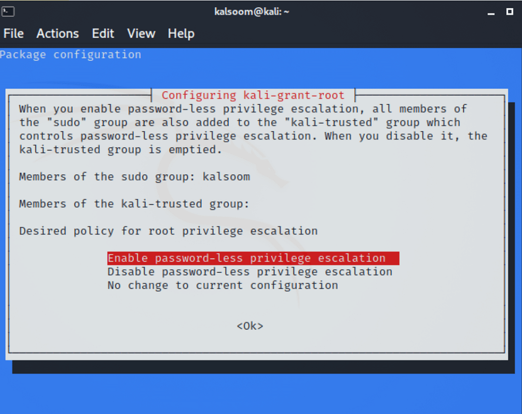 Step 4: Ensure that “enable password-less privilege escalation” is selected before clicking enter to proceed further.
